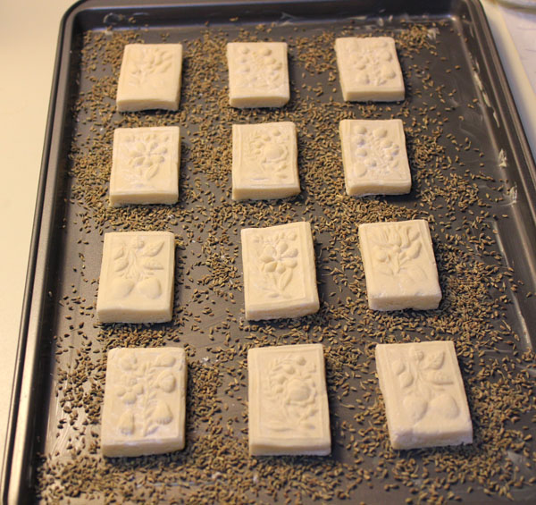 7. Leave out to dry uncovered at room temperature for 15 to 24 hours. Don’t skip this step. Sufficient drying ensures that they will lose none of their detailed design in baking.