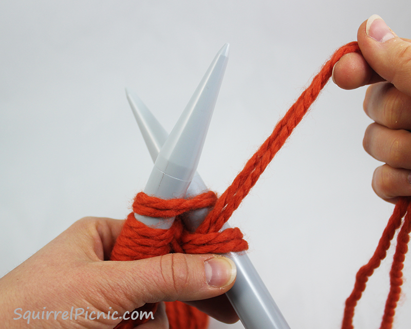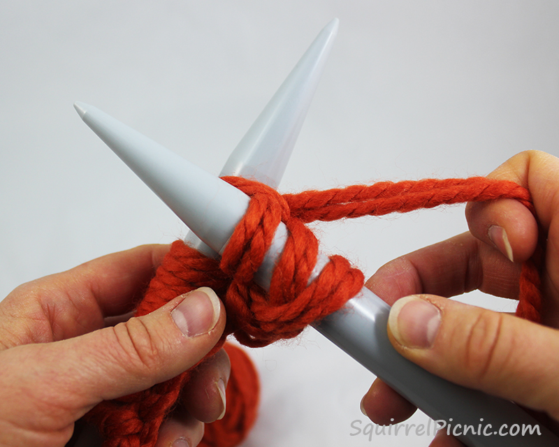 Place the slipknot on one knitting needle and hold it in your left hand.