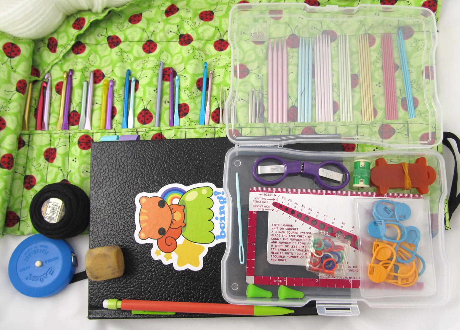 Anyone who’s traveled with a yarn project can tell you the importance of having a good kit to hold your project and supplies. Whether you’re commuting by bus like I am or you’re packing for a summer vacation, here are some articles to help you get organized so you can take your skills on the road, and read on to find out about the kit I finally chose.