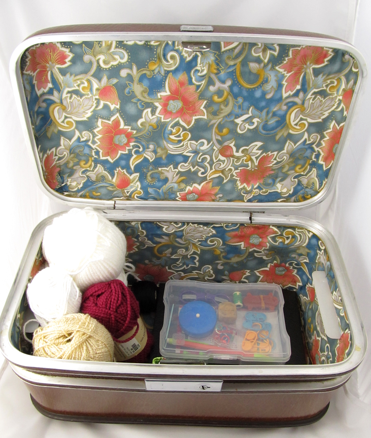 Most of all, it’s important to choose a kit that will complement how you travel and the type and number of projects you want to take with you. Here’s what I think makes the perfect kit for me: (1) It has to be big enough to hold my sketchbook, tool case, and a whole, almost finished sweater, (2) small enough that it can fit on my lap or under the seat if needed, (3) cute enough to carry with me every day regardless of the weather, and (4) rugged enough to last a long time. And the one case I found that meets my stringent criteria… the 1960s train case.