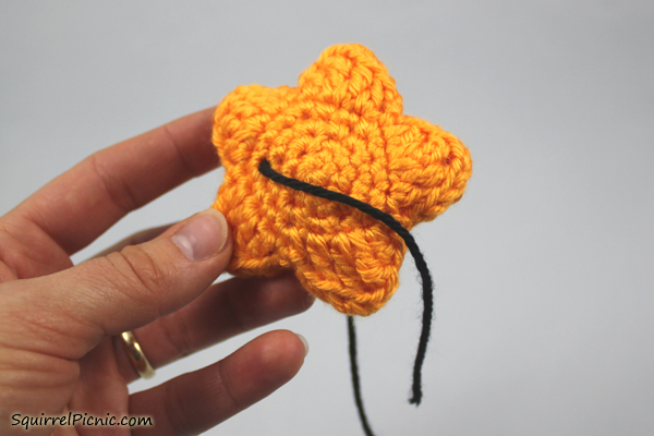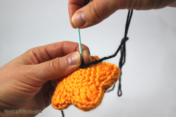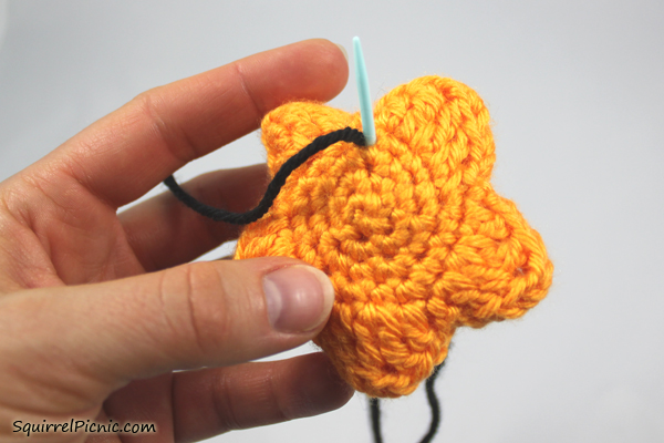 16. I like to tie these two ends together and push them into the amigurumi to hide them.