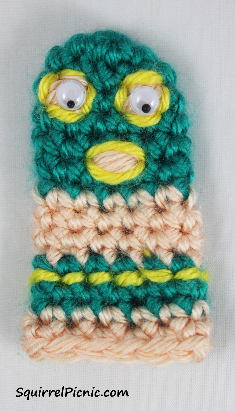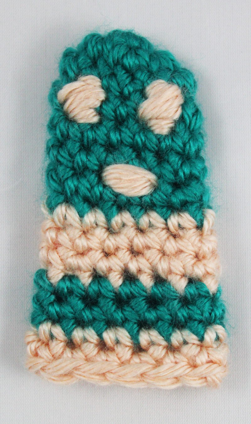 This pattern calls for the use of glue-on googly eyes. Because of the choking hazard, if you are making these thumb wrestlers for small children, please consider embroidering the eyes instead.