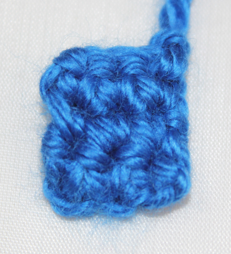 Row 1: Sc in 2nd ch from hook and in ea ch across. Turn. (3)