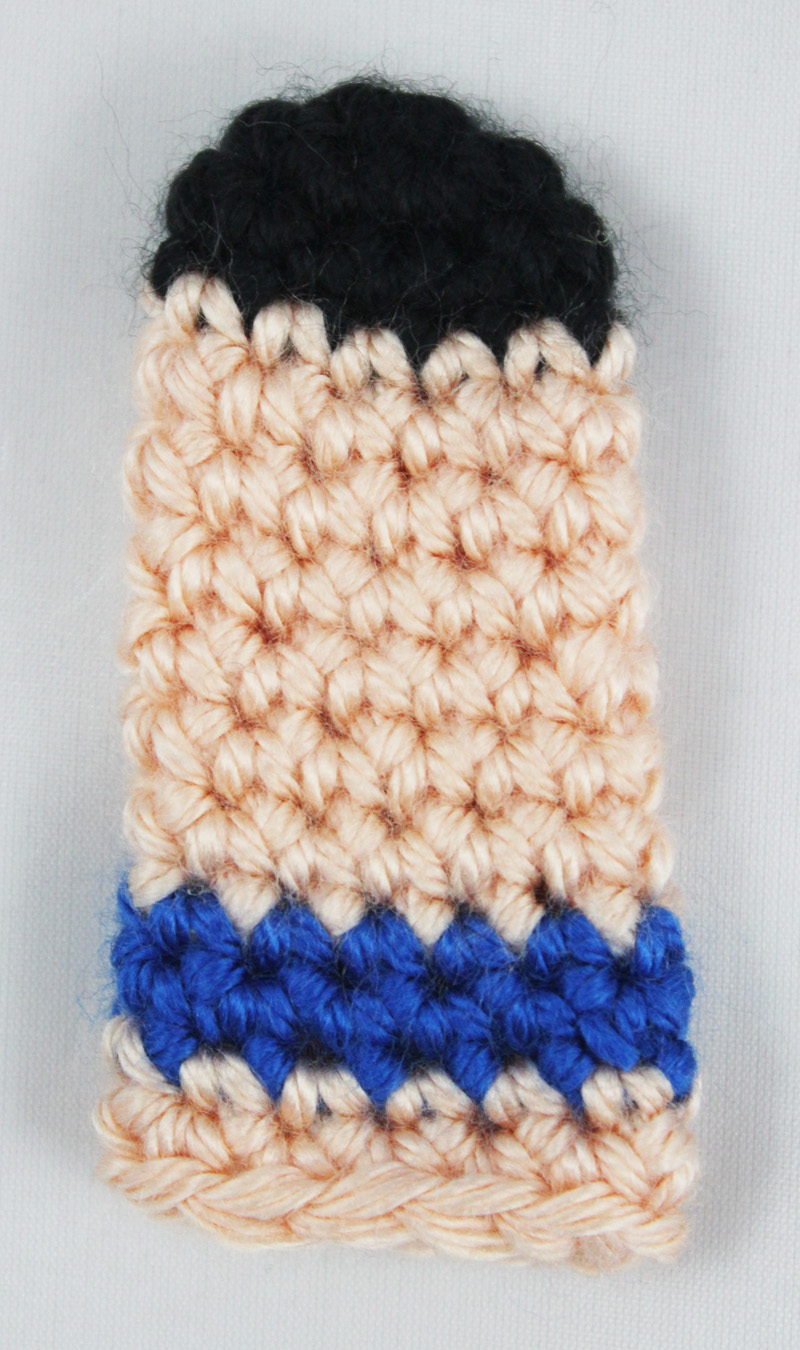 Rnds 4-5: 4 sc, switch to pink, 4 sc, switch to black, 4 sc.