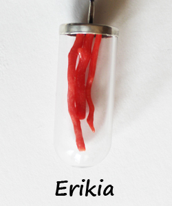 My favorite charm was the one I made for you [Jennifer]. Once I put the coral into the test tube, magic happened! Simple, interesting and beautiful. I’ve got to add it to my jewelry line. (E)