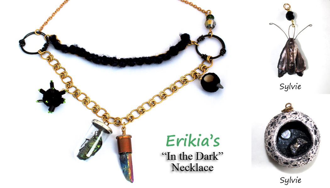 I’ve had themes that are very specific and ones that are more abstract. The more abstract ones are usually more interesting, as I think they take shape as each person works on it. It’s like my necklace “In the Dark”. I got some really amazing charms on it and would have never thought it would have gone in the direction it did. I love it! (E)