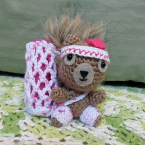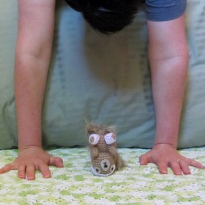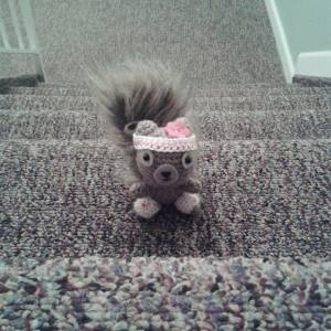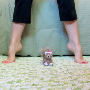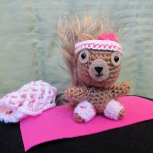 Even Podge has her own workout accessories. Over the course of the month, I made her a headband, leg warmers, gym towel, and a yoga mat and bag. Now you can make them for your squirrel friend, too, with my patterns below. And enjoy the gallery of photos from our month of exercise. Some of these really crack me up!