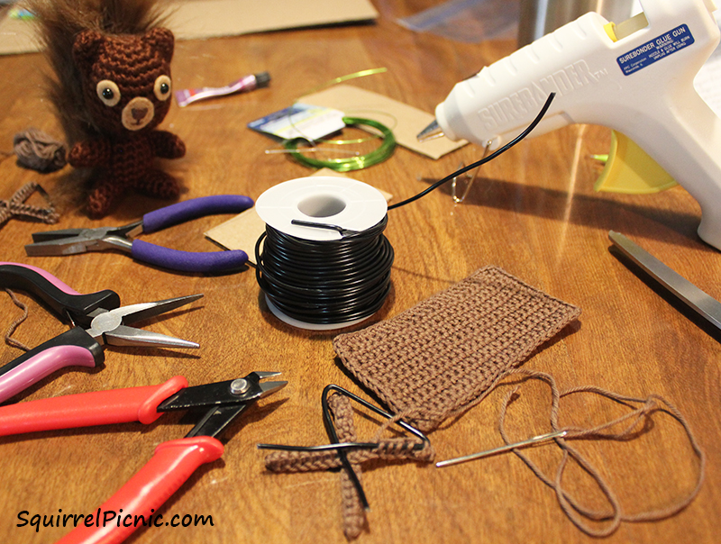 I was even able to coerce Eric into leaving the laboratory for a second to help me. In the end, I think he is really happy with his new workbench. Seeing as I’ve had some experience with miniature crochet, I’d like to try crocheting a hammer, screwdriver, and wrench for him. Thanks to my friends over on Squirrel Picnic’s Facebook page, I have a lot of options to think about regarding their construction.
