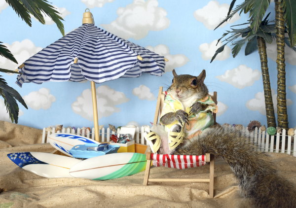 Photographer Nancy Rose sets up miniature scenes in her backyard and photographs wild squirrels interacting with them. What a hoot!
