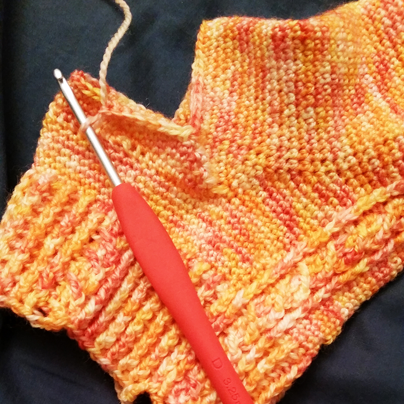 If you’d like to participate, you’ll need approximately 425 yards of fingering weight yarn (4 ply), a 2.75mm (US C/2) crochet hook, stitch markers, and a yarn needle. The pattern is written for women’s size 9 shoe but you can try on the sock as you go to make adjustments.