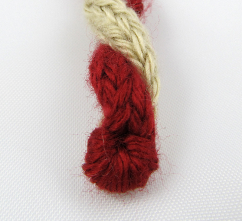 To re-create this classic Christmas cookie in yarn, I would need to make two long snakes in red and white. That was easy – just make I-cords! But then came the question of how to twist them together. I deliberated over adding wire or sewing the two strands together, until my husband provided a great solution – torsion! This tutorial will show you how by twisting one cord really tight and tying it to the other, the two cords become entwined and stay that way. (But don’t ask me to explain the physics. I like to believe it’s just magic.)