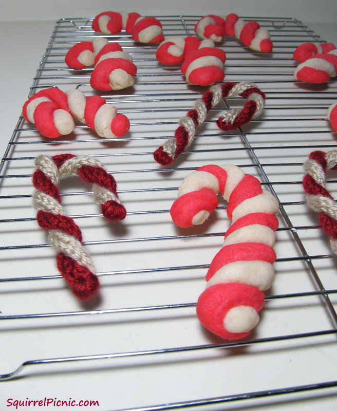 Crochet Candy Cane CookiesDo you remember making “snakes” (either with clay or dough) when you were a kid? Kids love rolling the dough on the table or between their hands until a snake appears, seemingly by magic. Many things can be made with these “snakes.” There’s coffee mugs if you’re using clay and pretzels if you’re using dough, but we’re talking Christmas here, so we’ll concentrate on my personal favorite use of a dough snake… the candy cane sugar cookie.
