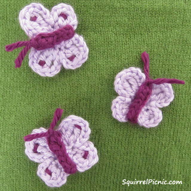 I can think of several great uses for these butterflies: Sew them onto bags, towels, pillows, or afghans. Glue a magnet on and attach them to your fridge door. Pin them to a bulletin board. They add a little touch of spring wherever they go. What will you do with your butterflies?