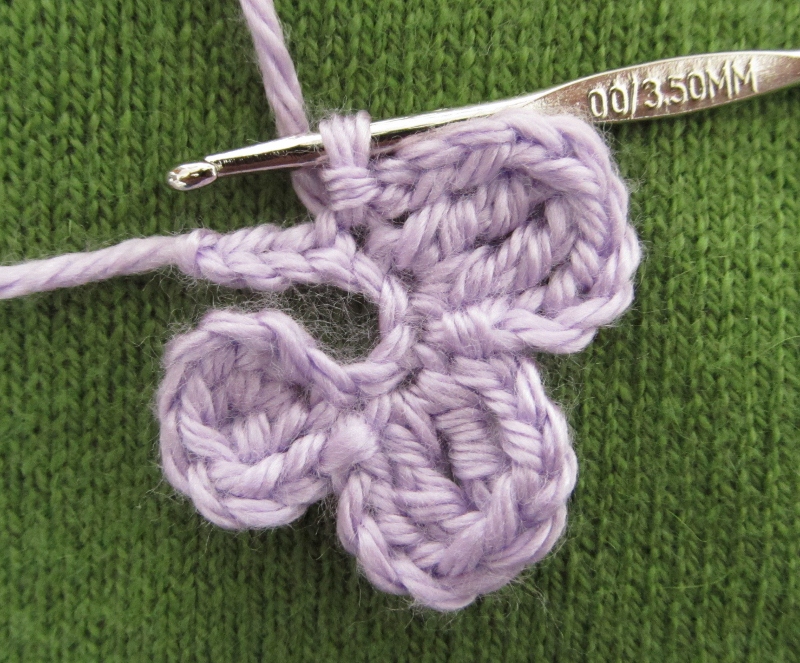 Ch 3, 2 dc in next ch, ch 2 and slst in next ch.